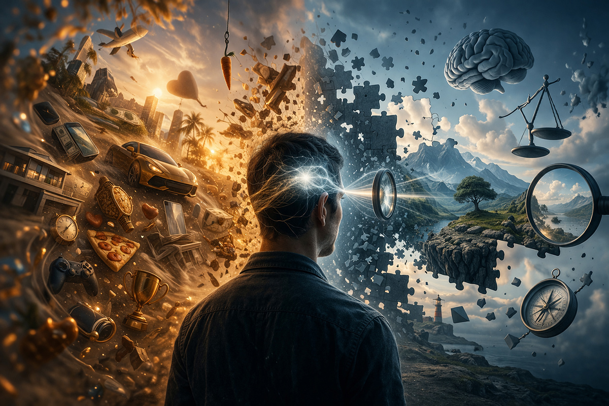 إذا كان الوعي البشري آلة حاسبة دقيقة ومحايدة، فكيف نفسر تمسك أفراد يتمتعون بذكاء حاد وتفكير عميق بمعتقدات ثبت زيفها مراراً وتكراراً؟ الإجابة تكمن في أن مرآة الوعي ليست صافية كما تخيلنا، بل هي مرآة "مُلوَّنة" ومُحدبة، تشكلت زجاجتها من طبقات متراكمة من المخاوف، والاحتياجات، والأهم من ذلك كله: "الرغبة". هنا تتبلور الإشكالية الكبرى في فهمنا لطبيعة الإدراك البشري؛ فنحن مضطرون للتوقف وطرح السؤال المعقد: هل يرى وعينا الواقع كما هو موجود في الخارج فعلاً، أم أنه يعيد تدوير هذا الواقع وتشكيله ليتطابق بصورة مريحة مع ما "نرغب" بشدة في أن يكون صحيحاً؟ هل نحن نبحث عن الحقيقة، أم نبحث عن الراحة التي توفرها لنا أوهامنا؟