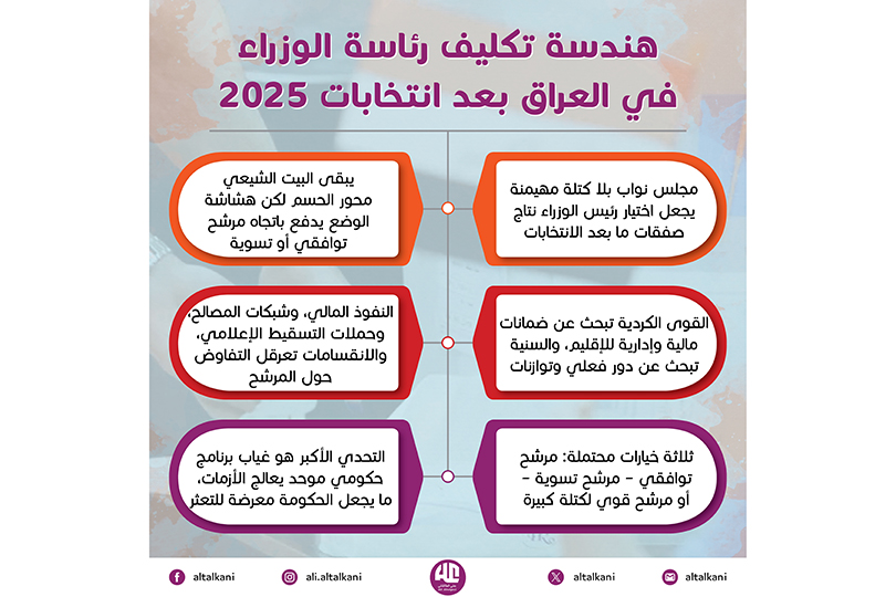 إن اختيار رئيس الوزراء بعد انتخابات 2025 يعكس أكثر من توزيع مقاعد، إنه نتيجة هندسة سياسية متعددة المستويات، تتقاطع فيها قواعد اللعبة الدستورية مع توازنات داخلية وخارجية، ومعايير للكفاءة وأخرى أمنية واقتصادية ملحة، وكلما ازداد تشظي البرلمان، زاد احتمال ظهور مرشح تسوية على حساب مرشح أغلبية...