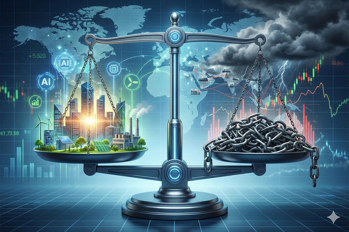 أصدر صندوق النقد الدولي في شهر يناير 2026 تقريره المعنون "مستجدات آفاق الاقتصاد العالمي: الاقتصاد العالمي: استقرار وسط قوى متباينة". يستهل التقرير نظرته المستقبلية بالإشارة إلى قدرة الاقتصاد العالمي على الصمود، حيث يتوقع أن يبلغ النمو العالمي 3.3% في عام 2026 و3.2% في عام 2027، وهي معدلات تحاكي ما تحقق في عام 2025. ويعزو التقرير هذا الاستقرار الظاهري إلى توازن دقيق بين قوى متباينة؛ فمن جهة توجد عوامل معاكسة ناتجة عن تحولات السياسات التجارية، ومن جهة أخرى توجد عوامل دافعة قوية تتمثل في طفرة الاستثمار المرتبط بالتكنولوجيا والذكاء الاصطناعي، لا سيما في أمريكا الشمالية وآسيا، مدعومة بأوضاع مالية تيسيرية وقدرة القطاع الخاص على التكيف.