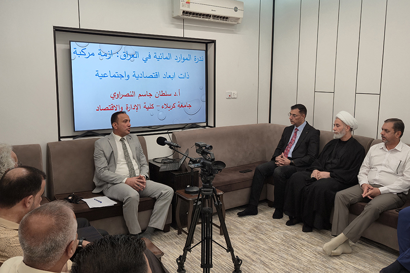 ناقش مركز الفرات للتنمية والدراسات الاستراتيجية ندرة الموارد المائية في العراق، وذلك في ملتقى النبأ الأسبوعي بمقر مؤسسة النبأ للإعلام والثقافة، عصر السبت الموافق (11/10/ 2025)، وحضر هذه الحلقة مجموعة من الباحثين والأكاديميين ومدراء المراكز البحثية، حيث قدم الدكتور سلطان النصراوي وهو أستاذ أكاديمي في كلية الإدارة والاقتصاد بجامعة كربلاء المقدسة، ورقته البحثية التي حملت عنوان (ندرة الموارد المائية في العراق: ازمة مركبة ذات ابعاد اقتصادية واجتماعية) وقد جاء في هذه الورقة: