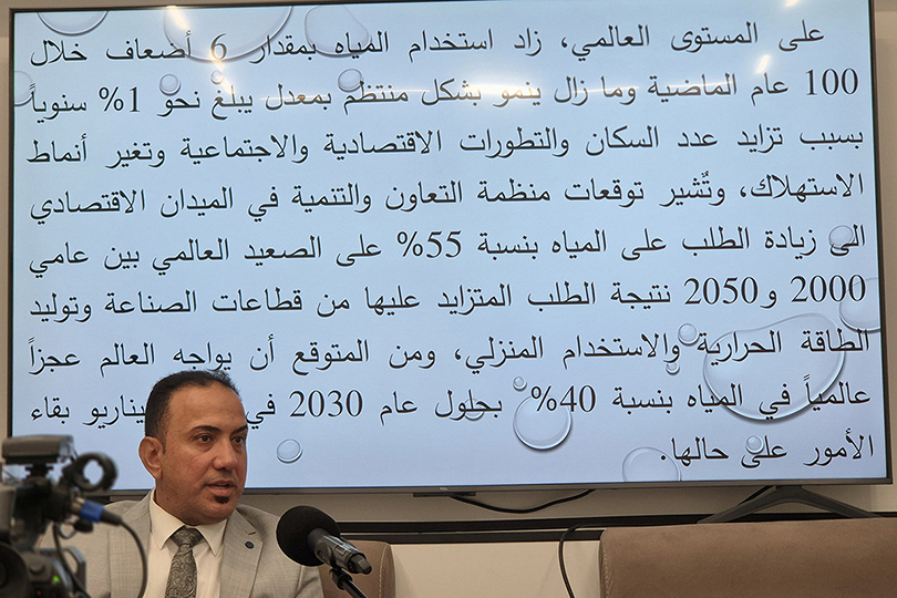 أعتبر من خلال هذه المحاضرة ندرة المياه وكأنها حرب تُخاض ضد العراق وشعبه، وعدم اتخاذ الإجراءات الوقائية لمعالجة هذه الأزمة تعني لنا الموت والهزيمة. فهناك جانبان يتعلقان بهذه القضية وهما: