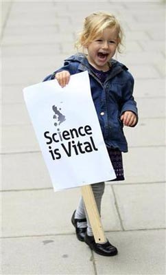 حيوي أثناء احتجاج للعلماء في لندن على تخفيضات متوقعة في الانفاق على