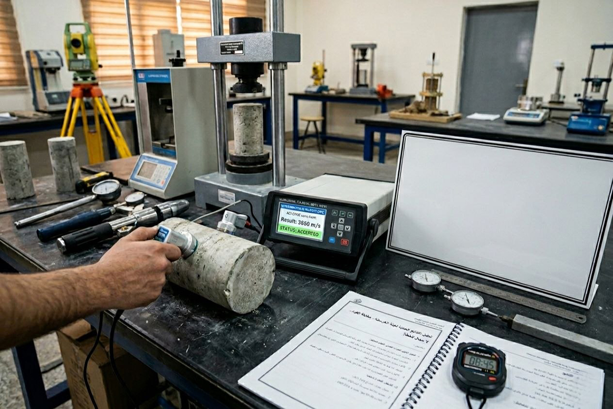 الفحوصات غير الإتلافية لم نعد نكتفي باختبارات الكسر التقليدية؛ بل نختبر الطلبة في تقنيات حديثة مثل (Ultrasonic Pulse Velocity) و(Rebound Hammer)، وهي تقنيات تستخدم لفحص المباني دون هدمها، وهذا قمة التطور في صيانة المنشآت.