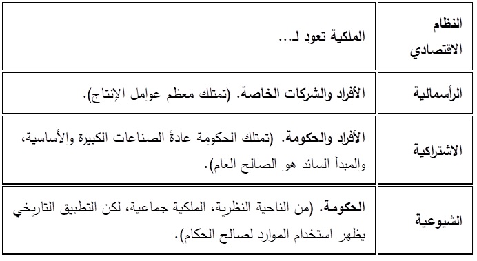 تختلف ملكية عوامل الإنتاج أيضًا بناءً على النظام الاقتصادي: