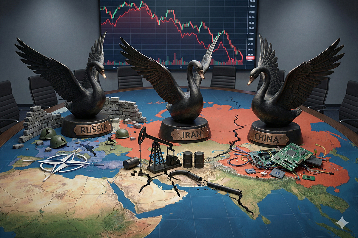 يسلط هذا المقال الذي نشرته منصة (Investopedia)، الضوء على تقرير حديث، الذي يرصد سيناريوهات "البجعة السوداء" المحتملة لعام 2026. يناقش كيف يمكن لأحداث جيوسياسية مفاجئة في روسيا وإيران والصين -مثل انهيار أنظمة أو حروب أو طفرات تكنولوجية- أن تحدث هزات عنيفة في الاقتصاد العالمي. كما يقدم إطاراً نظرياً لمفهوم "البجعة السوداء" الذي صاغه نسيم نيكولاس طالب، معرفاً إياها بأنها كوارث نادرة يستحيل التنبؤ بها، لكنها تغير مسار التاريخ والأسواق المالية جذرياً.