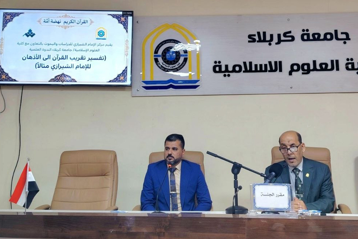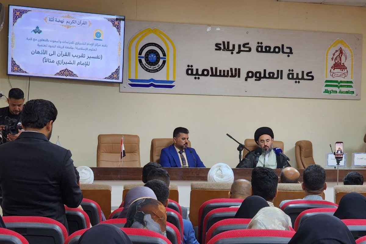 تحت شعار "القرآن الكريم نهضة أمة"، وبمشاركة نخبويّة من الباحثين والأكاديميين، عقد مركز الإمام الشيرازي للدراسات والبحوث بالتعاون مع كلية العلوم الإسلامية في جامعة كربلاء، ندوة علمية تخصصية سلطت الضوء على الأبعاد المعرفية والمنهجية في تفسير "تقريب القرآن إلى الأذهان" للمرجع الراحل الإمام السيد محمد الحسيني الشيرازي (أعلى الله درجاته).