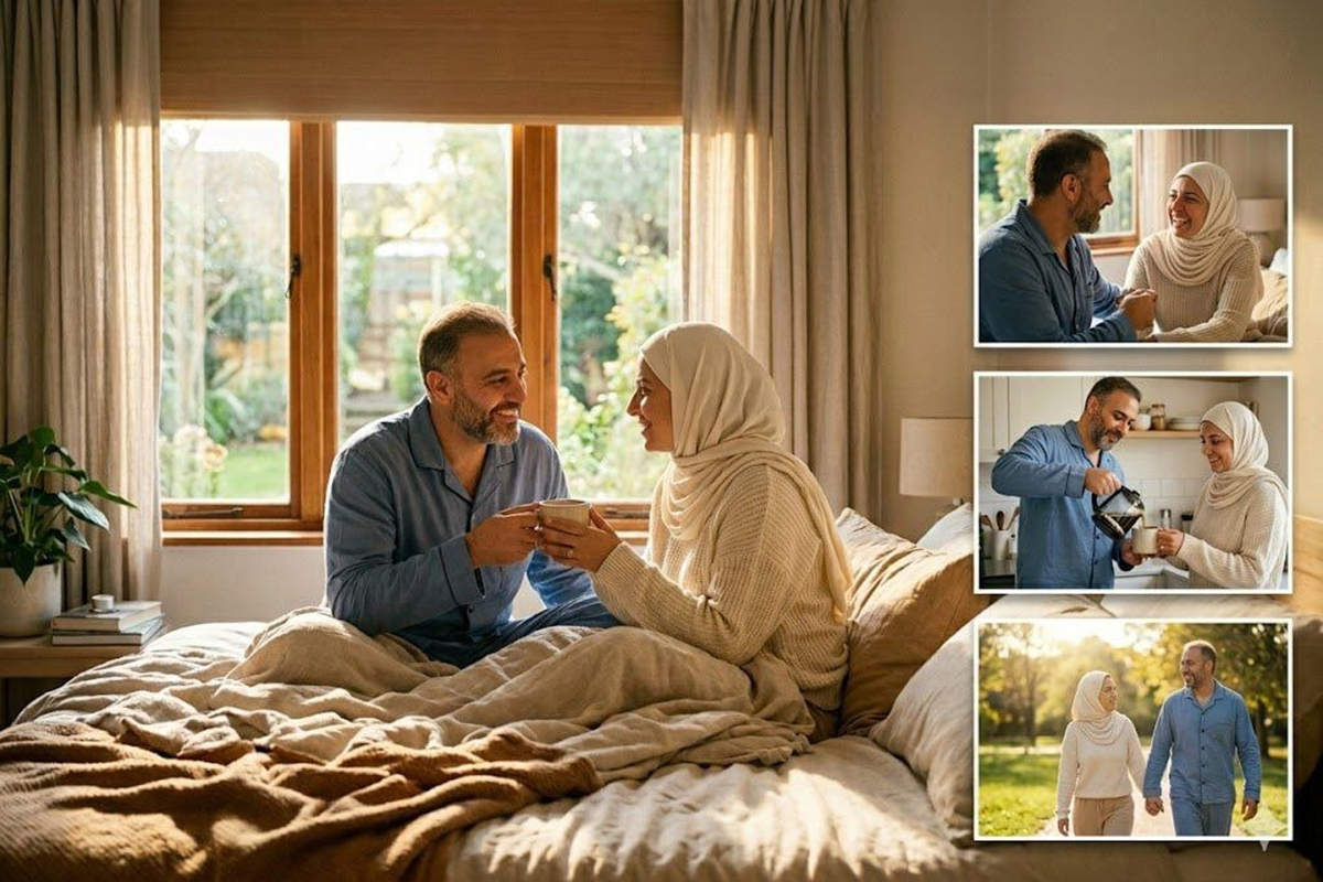1_ إنشاء روتين صباحي مصغر: معظم الصباحات تكون سريعة وفوضوية. لكن الأزواج السعداء يجدون طرقًا بسيطة لبدء يومهم معًا، ولو لخمس أو عشر دقائق فقط. قد يعني ذلك ضبط المنبه مبكرًا قليلًا للاحتضان قبل النهوض من السرير، أو ترتيب السرير معًا أثناء الحديث عن الأحلام، أو الجلوس جنبًا إلى جنب لتناول قهوة الصباح - حتى في صمت. المهم ليس كيف تفعل ذلك، بل أن تفعله بالفعل.
