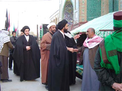 استمراراً لبرامج آل الشيرازي الكرام في تعظيم الشعائر الحسينية المقدسة، حيث كان للإمام الراحل آية الله العظمى السيد محمد الشيرازي (أعلى الله درجاته) وسماحة المرجع الديني آية الله العظمى السيد صادق الشيرازي (دام ظله) في كربلاء المقدسة وقبل ثلاثين عاماً من الحضور في جميع الحسينيات والمساجد والهيئات والتكايا و... طوال أشهر السنة خصوصاً أشهر حزن آل الرسول (عليهم السلام) شهر محرم الحرام وشهر صفر المظفر، والآن بعد انقطاع طويل لتلك المجالس الحسينية في العراق عموماً وكربلاء المقدسة خصوصاً وإبعاد أسرة الشيرازي، قام سماحة السيد محمد علي الشيرازي وفضيلة السيد محمد حسين الشيرازي نجلا الإمام الشيرازي الراحل (أعلى الله درجاته) مع أعضاء من مكتب الإمام الشيرازي في كربلاء المقدسة بحضور وزيارة هذه المجالس الحسينية وقد أبلغهم سماحة السيد محمد علي سلام وتحيات المرجع السيد صادق (دام ظله) وأكّد على إحياء وتعظيم شعائر سالإمام الحسين (عليه السلام) حيث إنها من أبرز مصاديق الآية الكريمة: (ومن يعظّم شعائر الله فإنها من تقوى القلوب)، وقال السيد في كلامه إن الخطوة الصغيرة لأجل سيد الشهداء (عليه السلام) هي كبيرة عند الله لو قورنت بالإخلاص وذلك لإن الله جلّ وعلى أراد أن يكون الحسين (عليه السلام) إستثناء للكون فكل شيء يرتبط بالحسين (عليه السلام) يكون استثناء أيضاً، بعد أن شكروا الله على ذهاب الطاغية من العراق وإحياء مراسيم الإمام الحسين (عليه السلام) وعاشوراء بشكل علني بعد أكثر من ثلاثين عاماً. وفي ما يلي عرض مصور لزيارة الوفد من بعض التكايا والهيئات: